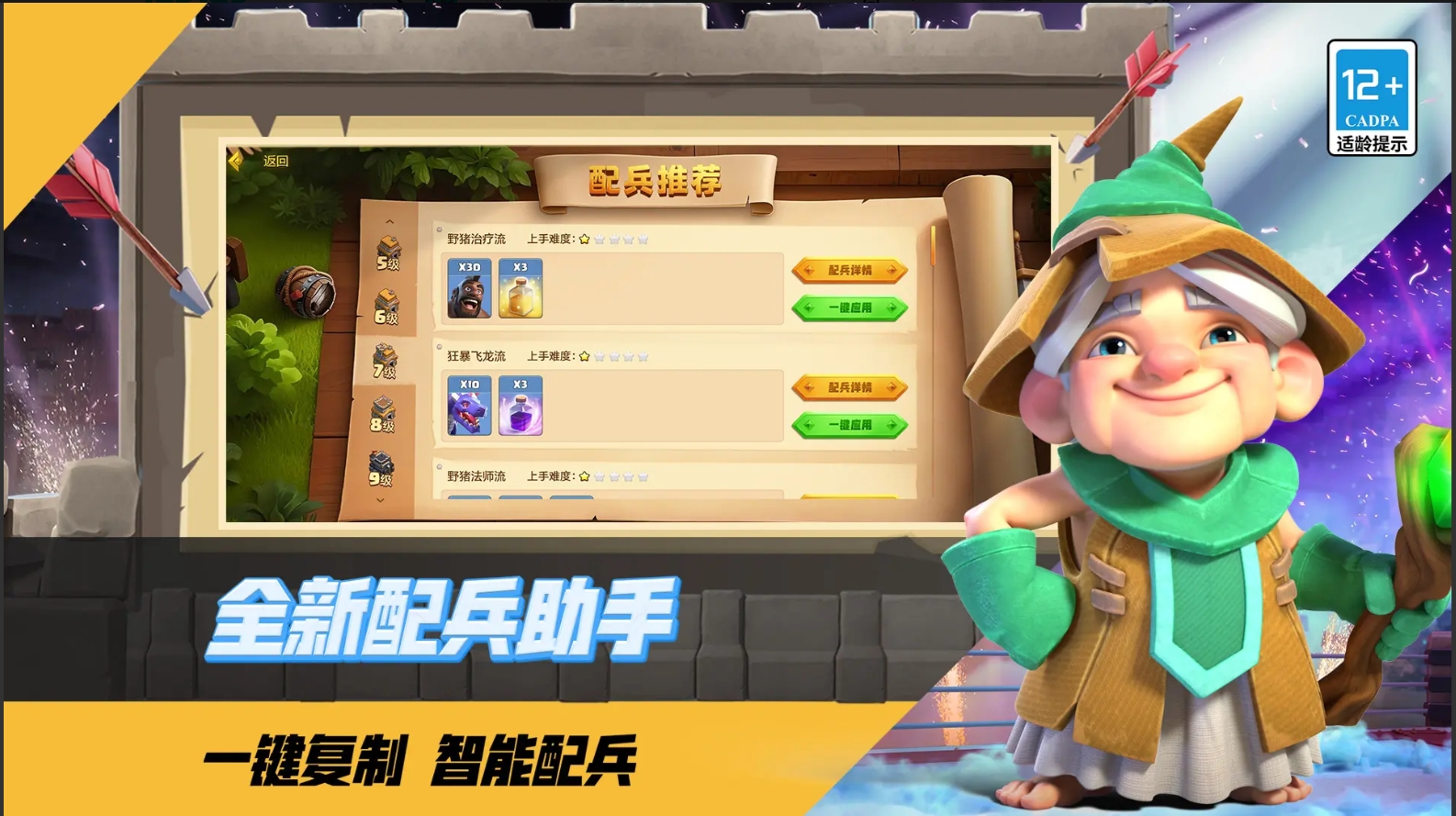 军队由兵种、英雄、法术和攻城机器构成。兵种类型丰富,包括普通兵种、超级兵种与黑水兵种,各有独特属性。英雄有野蛮人之王、弓箭女皇等,技能强大。12 种法术在不同场景发挥关键作用,攻城机器需大本营升至 12 级解锁工坊后使用。
