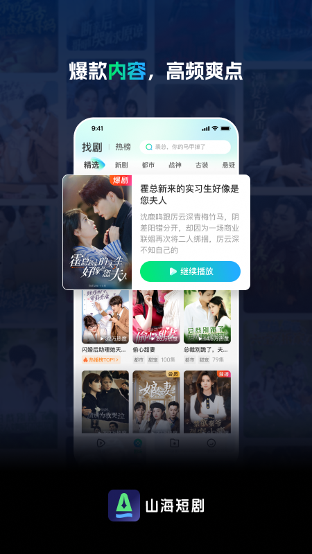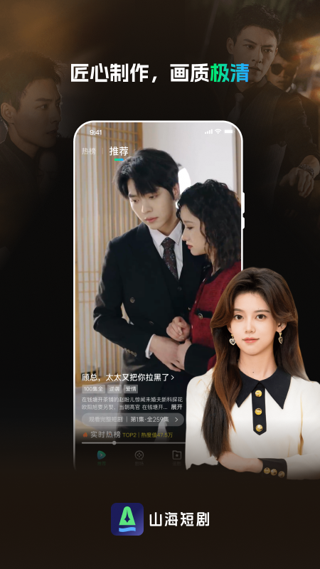 欢迎来到山海短剧,您的私人短剧天堂!在这个快节奏的时代,我们为您精心打造了一个汇集众多精品、自制、优质短剧的平台,让您在碎片化的时间里享受到精彩绝伦的视听盛宴。 【原创自制内容】:我们的团队与国内外顶尖编剧、导演合作,为您带来原创自制的短剧作品。从悬疑推理到浪漫喜剧,从科幻冒险到现实题材,多样化的题材满足您的各种口味。 【高品质制作】:每一部短剧都经过精心策划和制作,从剧本到拍摄,从剪辑到音效,每一个细节都力求完美,确保您享受到高品质的视听体验。 【随时随地观看】:无论是在通勤路上,还是在家中的沙发上,亦或是休息前,让您随时随地都能享受短剧带来的快乐。 【海量内容更新】:我们持续更新内容库,不断为您带来新鲜的短剧作品,让您的观影列表永远充满惊喜。