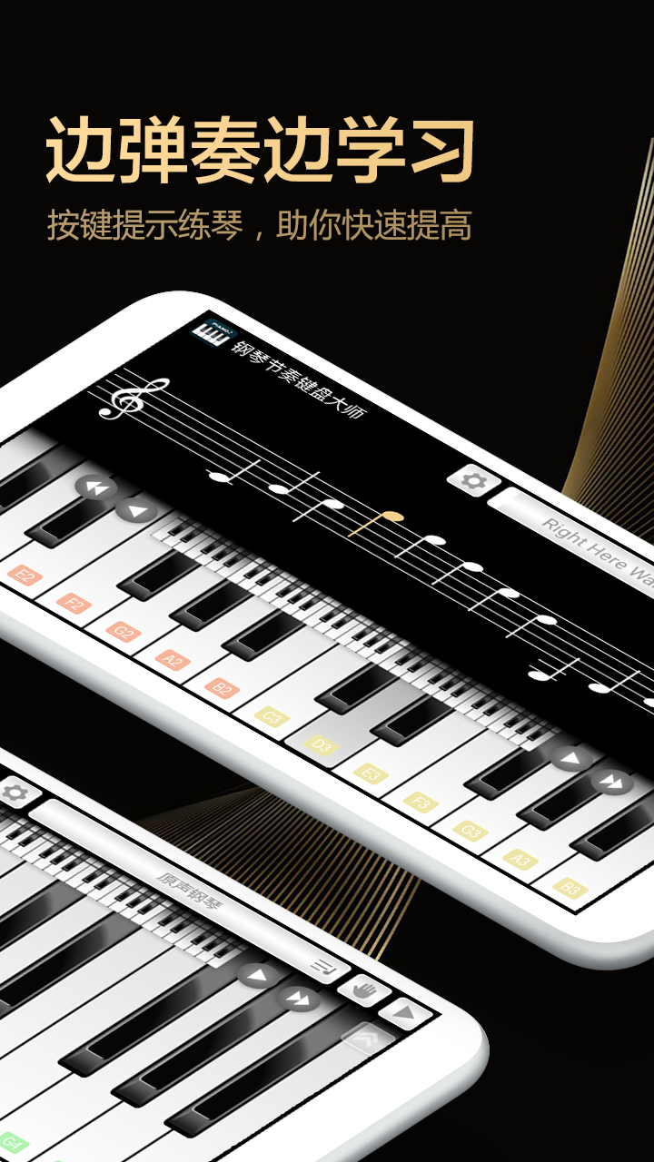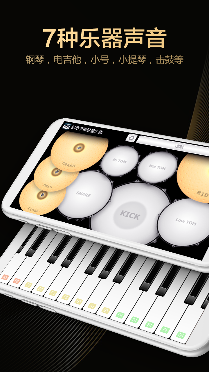 钢琴练习乐器模拟,完美钢琴陪练教学 钢琴节奏键盘大师-钢琴陪练(finger piano)是一款智能钢琴模拟器乐器,内置真实的钢琴音色,它能把你的手机变为一架微型智能钢琴,帮您学钢琴,钢琴练习,了解钢琴谱,认识钢琴教学,熟悉钢琴键盘、钢琴节拍,组建自己的库乐队、酷乐队 它有着真实的钢琴键盘界面,专业的钢琴师一定能发挥钢琴吧的魔力进行钢琴演奏;不懂钢琴乐理知识也能有超真实的完美钢琴体验 主要特色: - 高品质多音色:原声钢琴,电钢琴,原声吉他,电吉他,小号,小提琴和架子鼓 - 多种钢琴歌曲音乐演奏曲可以播放和学习 - 全钢琴键盘,钢琴块,简单易上手 - 钢琴和弦,练习钢琴的好帮手 - 支持多点触摸,让音乐在你指尖飞舞