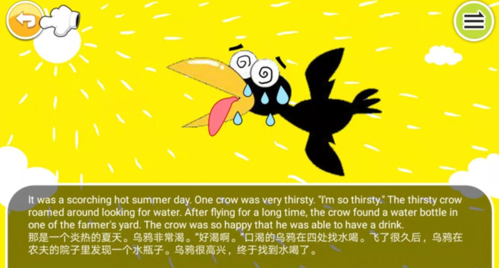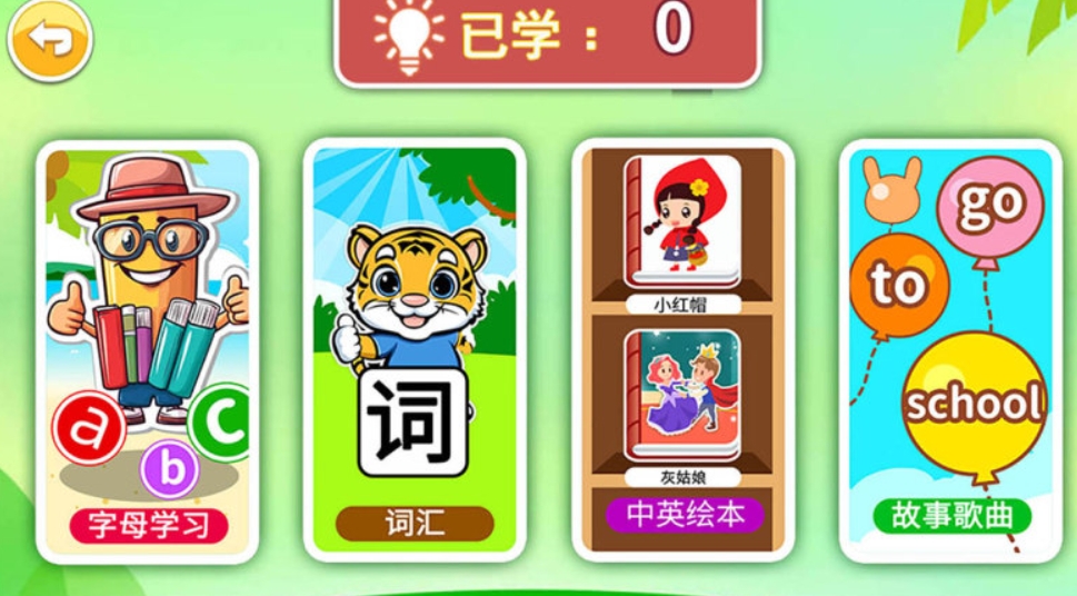 涵盖字母学习、单词学习、中英文绘本和同步课堂 【软件内容】:1、A-Z26字母学习;2、词汇学习;3、中英文绘本:中英文对照绘本,通过绘本,锻炼听力、积累词汇、学习句型;精美的图片+动画+纯正发音;绘本涵盖童话故事、寓言故事等,例如:白雪公主、小红帽、国王的新衣等;4、小学英语同步课堂。