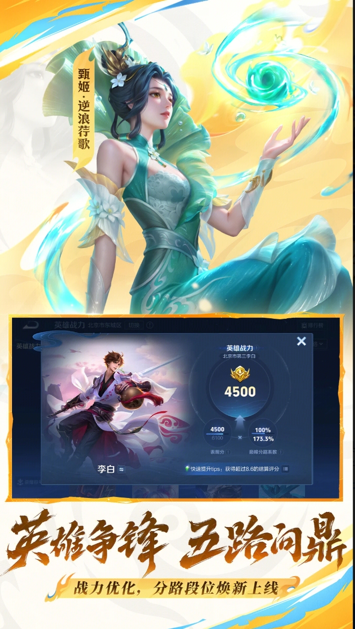 《王者荣耀》是腾讯第一5V5团队公平竞技手游,国民MOBA手游大作!5V5王者峡谷、公平对战,还原MOBA经典体验;契约之战、五军对决、边境突围等,带来花式作战乐趣!10秒实时跨区匹配,与好友开黑上分,向最强王者进击!多款英雄任凭选择,一血、五杀、超神,实力碾压,收割全场!敌军即将到达战场,王者召唤师快来集结好友,准备团战,就在《王者荣耀》!