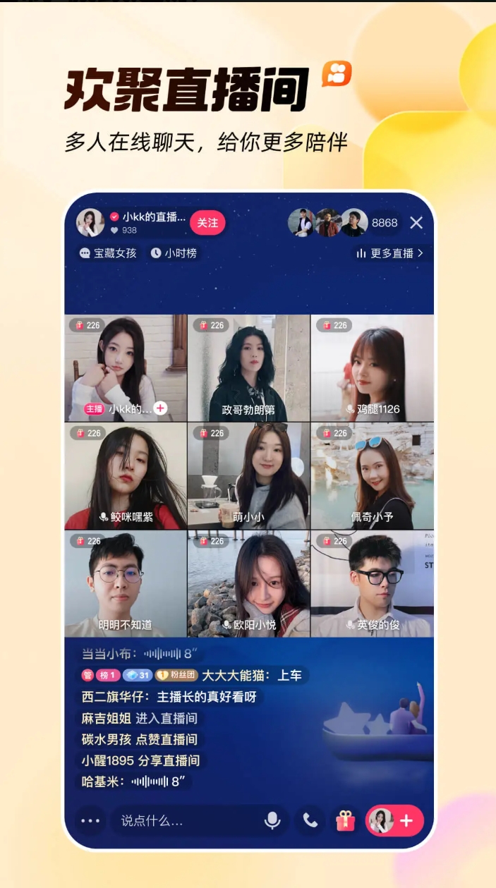 「有趣视频,一看就上瘾」 好看的、好玩的,好笑的短视频,都在这。 「一起同框,越玩越有戏」 随时随地多人同框,搭戏模仿,有趣更有戏。 「互动直播,有你更出众」 随时随地侃大山,好看的小哥哥小姐姐都爱玩的直播在这里。 「支持原创,潇洒做自己」 脑洞大、才艺多,有绝活,给你大舞台。 「美颜滤镜,拍出你的美」 30款美颜滤镜,上百种魔法表情;要萌要酷随你变,怎么变都好看。