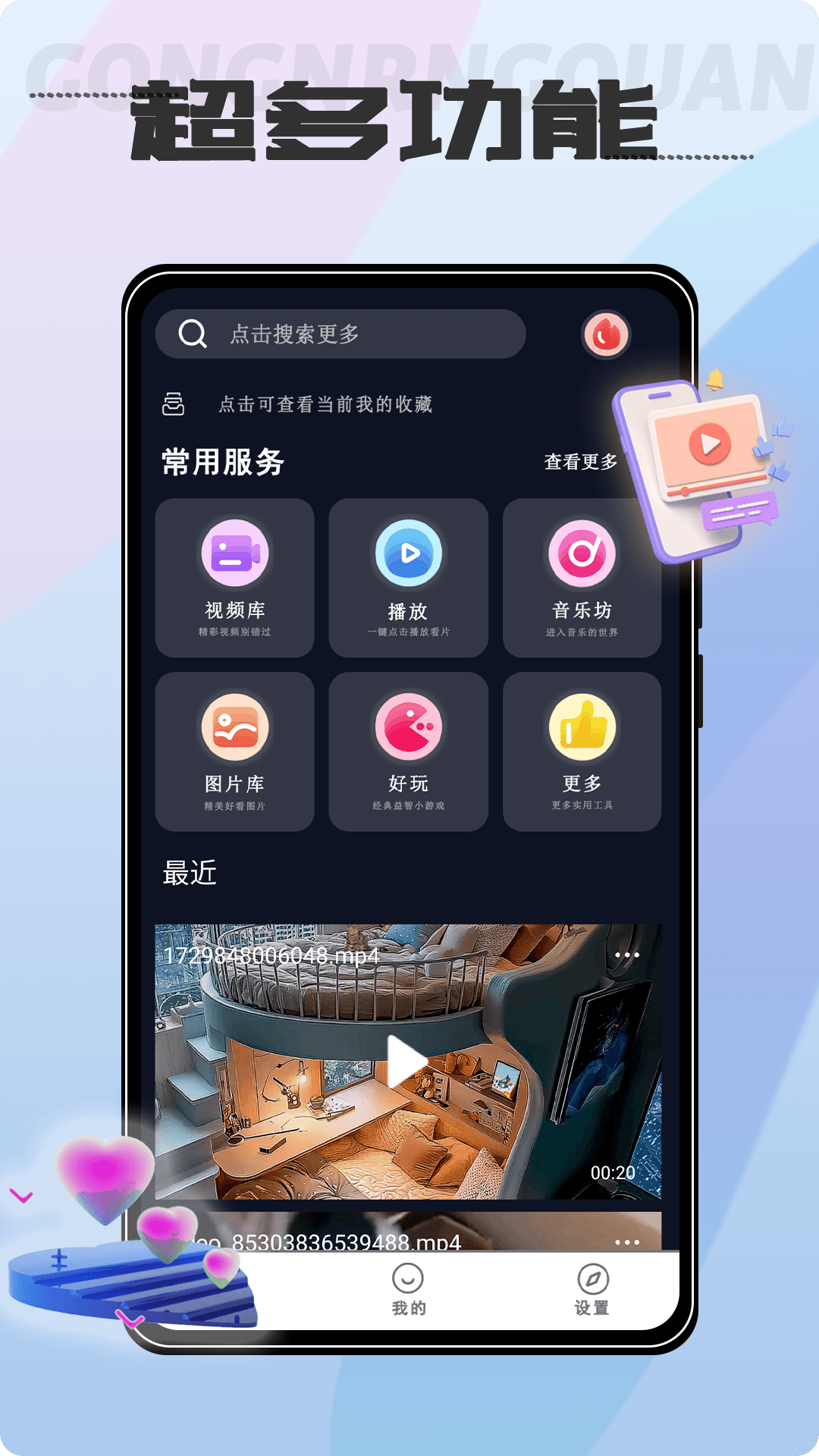 本软件是一款专业的视频影音播放器,观影神器,免费使用,打造最好的播放器! - 支持主流音视频格式(mkv, avi, mp4, rmvb, flv, wmv, mp3, 3gp, mov等等) - 便捷的传输功能,方便无拘束 - 私密视频功能,灵活管理,安全守护 - 支持变速播放,切换自如,高效追剧 - 支持播放下载后的视频文件 - 另带有播放音乐,查看图片,视频剪辑等功能