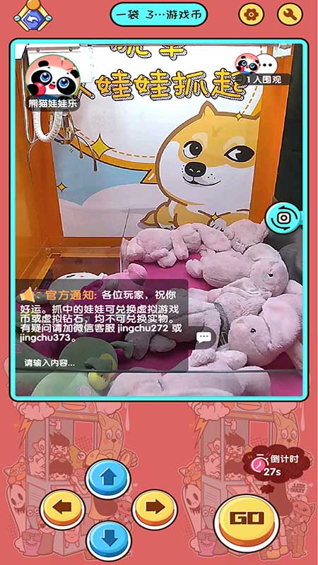 熊猫娃娃乐,是一个手机上的迷你版娃娃机游戏厅。不需要出门,只需要一台手机就可以随时随地玩抓娃娃。我们采用目前最先进的视频流畅清晰度和声音技术,绝对会带给你们绝佳的游戏体验。 【流行爪机】新型日本UFO二爪机,帕青哥的天堂,随时随地不分昼夜任意玩。爪机玩法多多,新型机器难度奖励升级,新手玩家也能轻易上手。 【公仔丰富】可爱、软萌、热门公仔,鬼灭之刃、菜狗,等各种正版的人气公仔,等你把它带回家。 【操作技巧】超清低延迟直播,轻松甩爪,准确瞄准娃娃,拼运气的时候到了。 【福利派送】新用户免费送币,连续签到游戏币拿到手软。春节、五一、国庆、圣诞节等活动惊喜少不了。