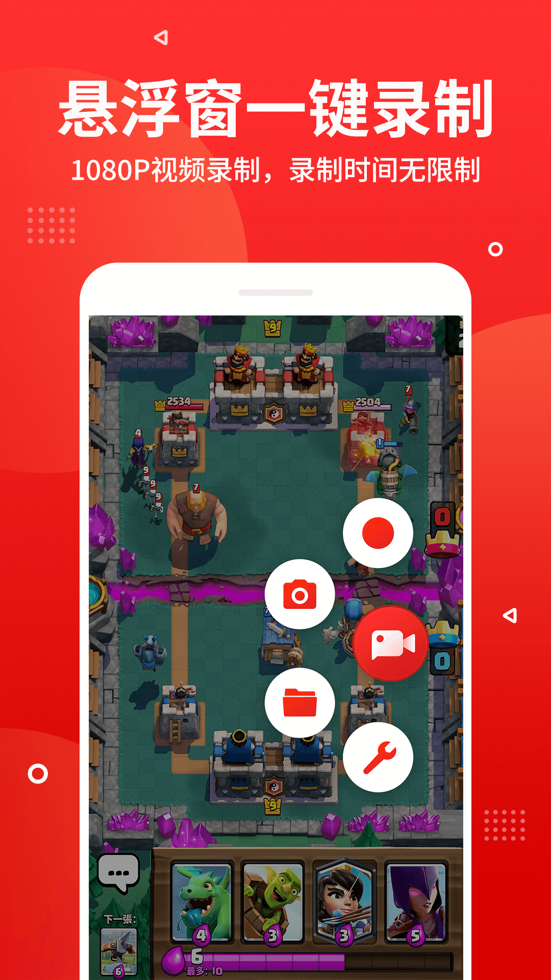 录屏,屏幕录制,视频编辑,视频剪辑 指尖录屏,录屏,无限制的录屏应用,能录制流畅清晰的手机屏幕视频和麦克风声音,录屏大师;轻松录制游戏过程、视频通话、直播节目以及其它各类视频 核心功能: 1 屏幕录制 提供稳定流畅的手机屏幕画面录制。可录制热门手机游戏视频;也可录制和亲朋好友的视频通话;还可录下直播软件的直播实况: a 提供多种分辨率、码率和帧率录制高清视频 b 暂停/恢复录制 c 启用摄像头 d 录制外部声音 e 录制过程中可隐藏悬浮窗 f 摇一摇停止录屏 g 画笔功能可在屏幕上绘制 2 视频编辑 丰富的视频编辑功能: a 剪切视频,掐头去尾去掉无用内容 b 改变视频速度,快放慢放随心调整 c 旋转视频,横竖屏自动兼容 d 添加音乐,制作自己的bgm 3 截屏与图片编辑 只需按一下,轻松截屏,还可分享截屏;图片编辑工具拼接和裁切本地图片 a 使用通知栏或悬浮窗一键截取屏幕画面 b 图片画笔:在图片上添加自己的涂鸦,划重点 c 裁切图片:保留你想要的部分图片