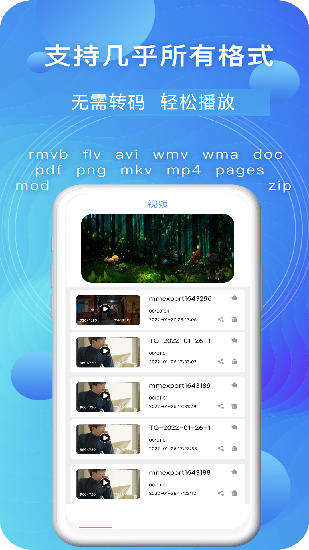 视频播放器大全所有视频格式。它支持M4V,FLV,MKV,MOV,MP4,AVI视频。您可以在离线状态下在Android设备上欣赏高品质的视频或音频。带均衡器的全高清视频播放器还可以帮助您使您的音频播放速度更快