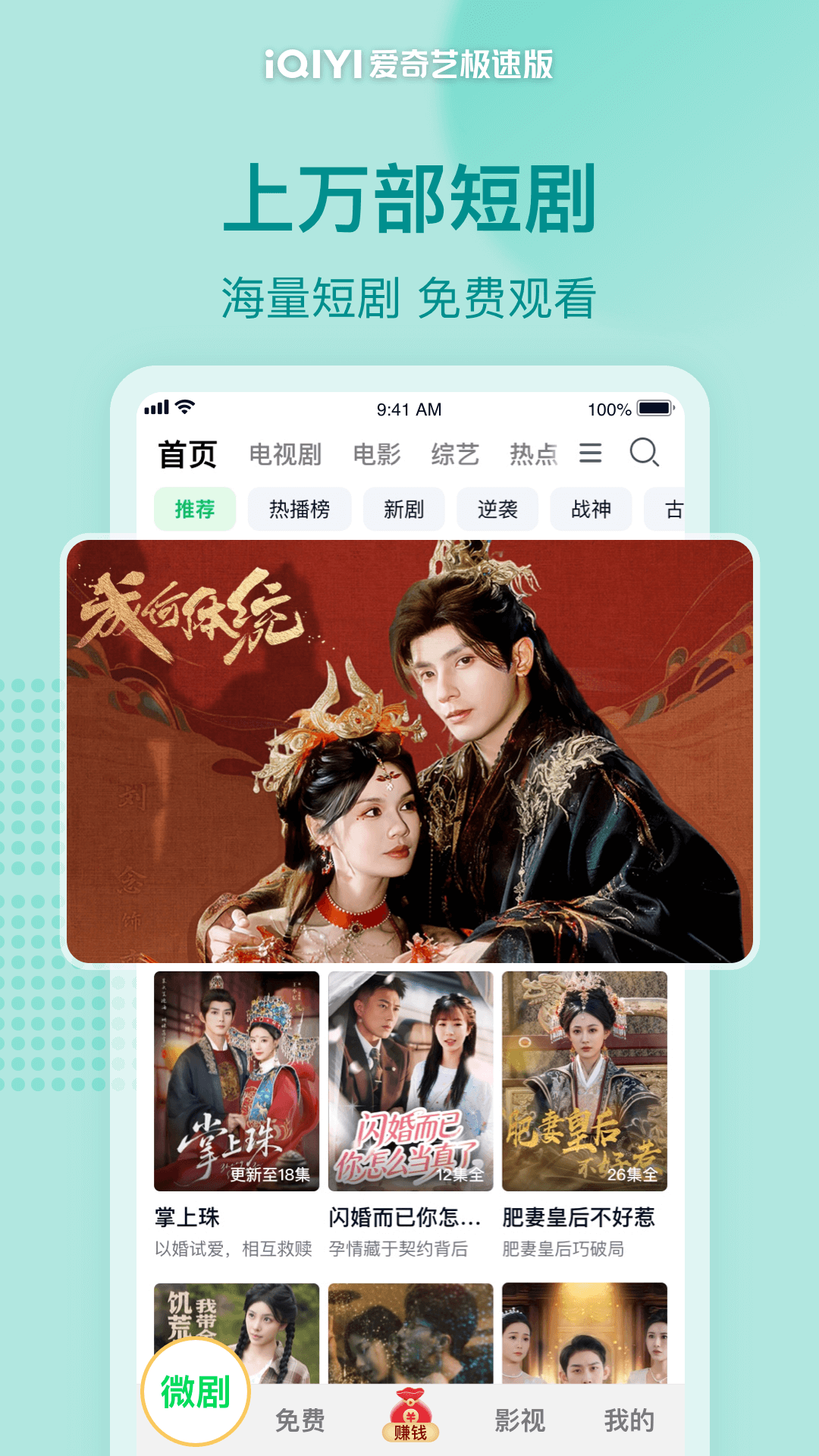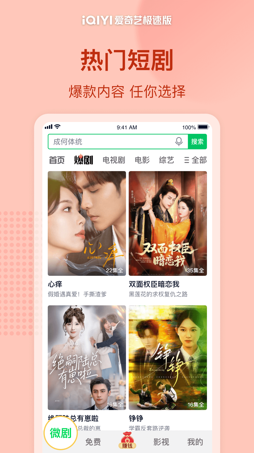 爱奇艺官方出品的APP,覆盖爱奇艺全部内容,功能简洁,内存占用少,会员更实惠,还能边看视频边赚金币 【更轻】安装包小,内存占用少,任何手机都能轻松运行 【更快】启动速度快,使用简单,视频播放更加流畅 【内容全】海量短剧免费看,畅享热门电视剧、电影、综艺、动漫等 【更实惠】高性价比的基础会员,内容全,价格低,有广告 【能提现】边看视频边赚金币,现金提现秒到账,还能免费兑会员 【热门短剧】 《成何体统》刘念何聪睿再搭 《念念有词》话痨和哑巴先婚后爱 《心痒》假婚遇真爱!手撕渣爹 《掌上珠》以婚试爱,相互救赎 《双面权臣暗恋我》黑莲花的求权复仇之路 《闪婚而已你怎么当真了》孕情藏于契约背后 【热播剧集】 《书卷一梦》穿书流强制爱 《朝雪录》双强携手破诡秘凶案 《正当防卫》正当防卫案再起风波 《朱雀堂》万茜秦俊杰破五毒迷案 【超燃电影】 《水饺皇后》马丽摆摊白手起家 《赴汤蹈火》安志杰吴建豪双雄对决 《猎金游戏》刘德华解锁投资密码 《哪吒之魔童降世》50亿票房爆燃国漫 【新鲜综艺】 《奔跑吧第9季》跑男团奔赴春日盛宴 《新说唱2025》哈圈洗牌,新人上场! 《种地吧第3季》奔赴热土扎根土地 《哈哈哈哈哈第5季》五哈团决战神金之巅 【温馨提示】 如遇到问题,请打开爱奇艺极速版APP-我的-帮助与反馈,点击页面下方【意见反馈】进行反馈。若您的问题仍末解决,可在"我的-关于我们-联系我们- 在线客服" 进一步反馈或直接拨打客服电话(400-923-7171),您的反馈是对我们改善服务很大的帮助!