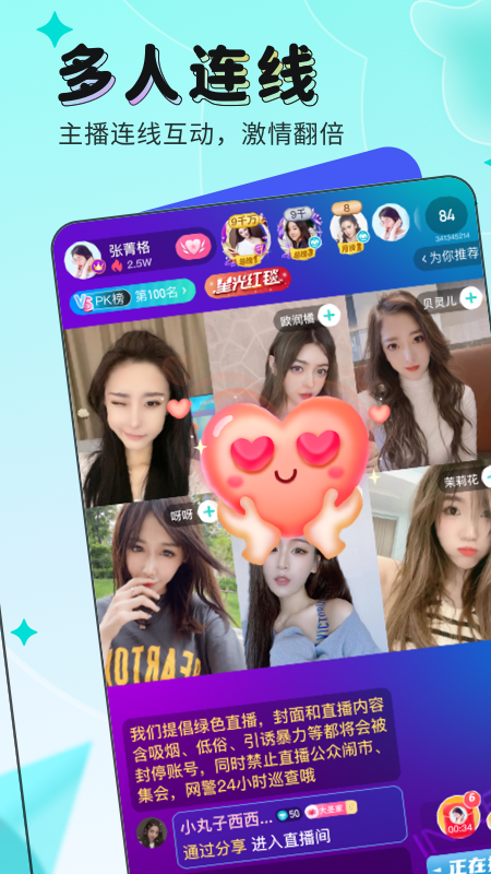 映客直播,高颜值直播平台,映客 9.0 ,首页全新升级! 直播、附近交友、派对,百万高颜值主播、用户在映客和你实时互动,你和ta从未如此靠近!和好看的人在映客不期而遇! —————————————————————— 【最新动态】 「直播升级」视频直播,不仅直播,其实我们玩法更多! 「 P K 升级」PK全新模式上线,多人互动更有趣,内容更丰富! 「线上派对」团战、觅友、颜值、相亲,你想要的这儿都有! 「缘分速配」功能全新上线:匹配附近真实主播,即刻畅聊! 【功能介绍】 「直播互动」高颜值主播与你在线实时互动; 「交友派对」直播间新增表情包玩法,此刻心情,自在表达; 「附近广场」轻松查看附近的人动态、直播,新增喜好标签,遇见兴趣相投的ta; 「派对玩法」线上派对新上相亲玩法,嘉宾互选、心动表白,快来试一下; 「热门榜单」带你认识全球最火爆的高颜值才艺主播; 「贵族守护」专属座驾,炫酷礼物引爆全场; 「家族体系」随时随地创建家族,找到你的小团体,一时喜欢,不如永久陪伴; 「贵族改版全新上线」开通主播奖励,续费多送钻石,还有更多新特权等你来体验