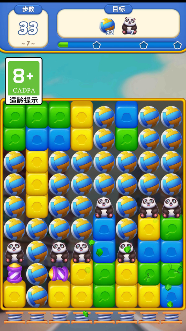 玩家通过点击两个或两个以上连在一起相同颜色的方块就可以把这些方块消除掉,玩家可以先消除比较多颜色相同的方块,因为在5个以上相连同颜色的方块消除后会奖励一个技能来消除方块几个相邻的技能可以合成一个更厉害的技能,通过技能可以快速消去方块完成游戏给出来的要求,玩家在玩的时候要注意自己的步数,因为游戏的步数是有些的在超过步数还没有完成游戏要求就算失败了。