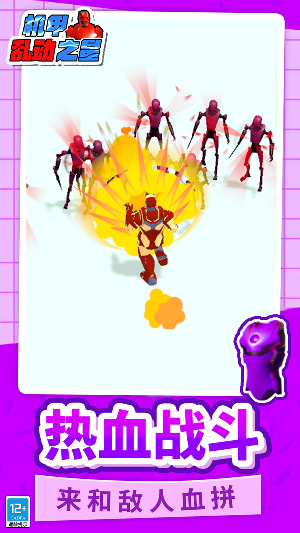 《机甲乱动之星》是一款以机甲格斗为主题的休闲创意小游戏,玩家需要驾驶乱动机甲,与想要统治世界的邪恶敌人战斗,玩家需要通过战斗,丰富自己乱动机甲的战斗力,从而消灭更多的敌人。