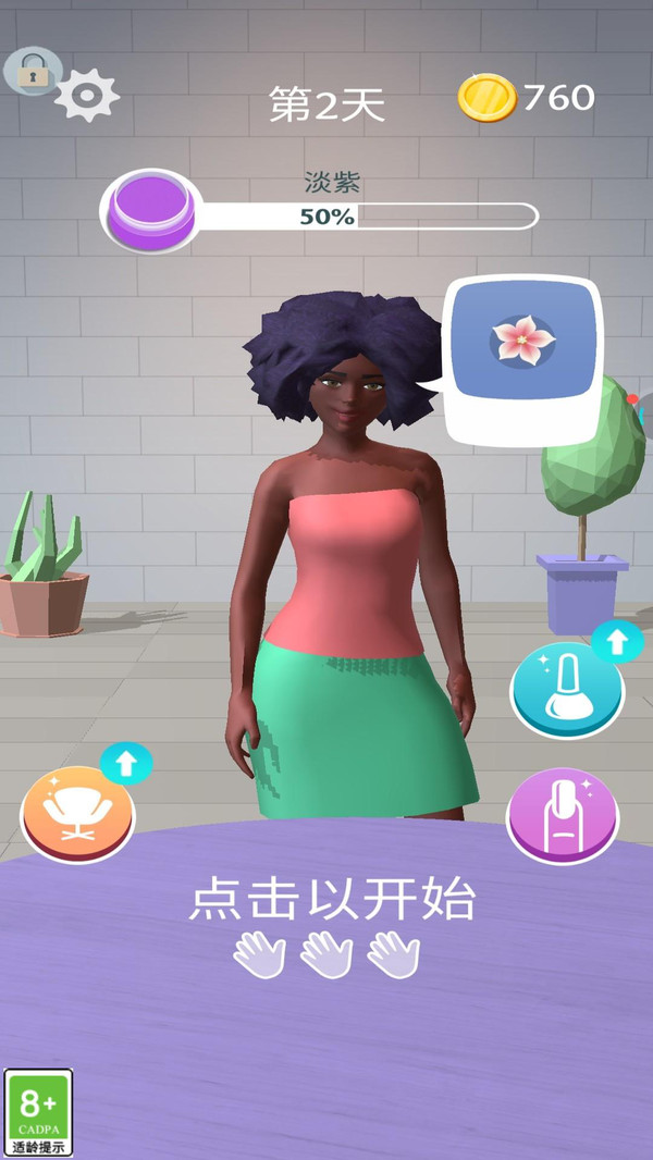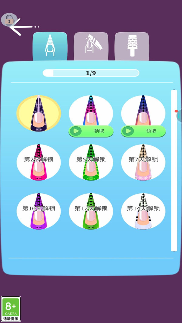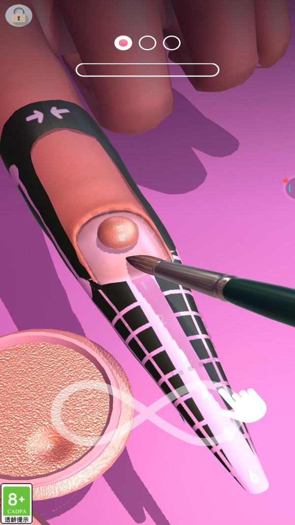 这是一款偏女性的模拟经营游戏。玩家在游戏中经营一家美甲店,完成顾客的美甲需求,并收集各种美甲道具和款式!!!!