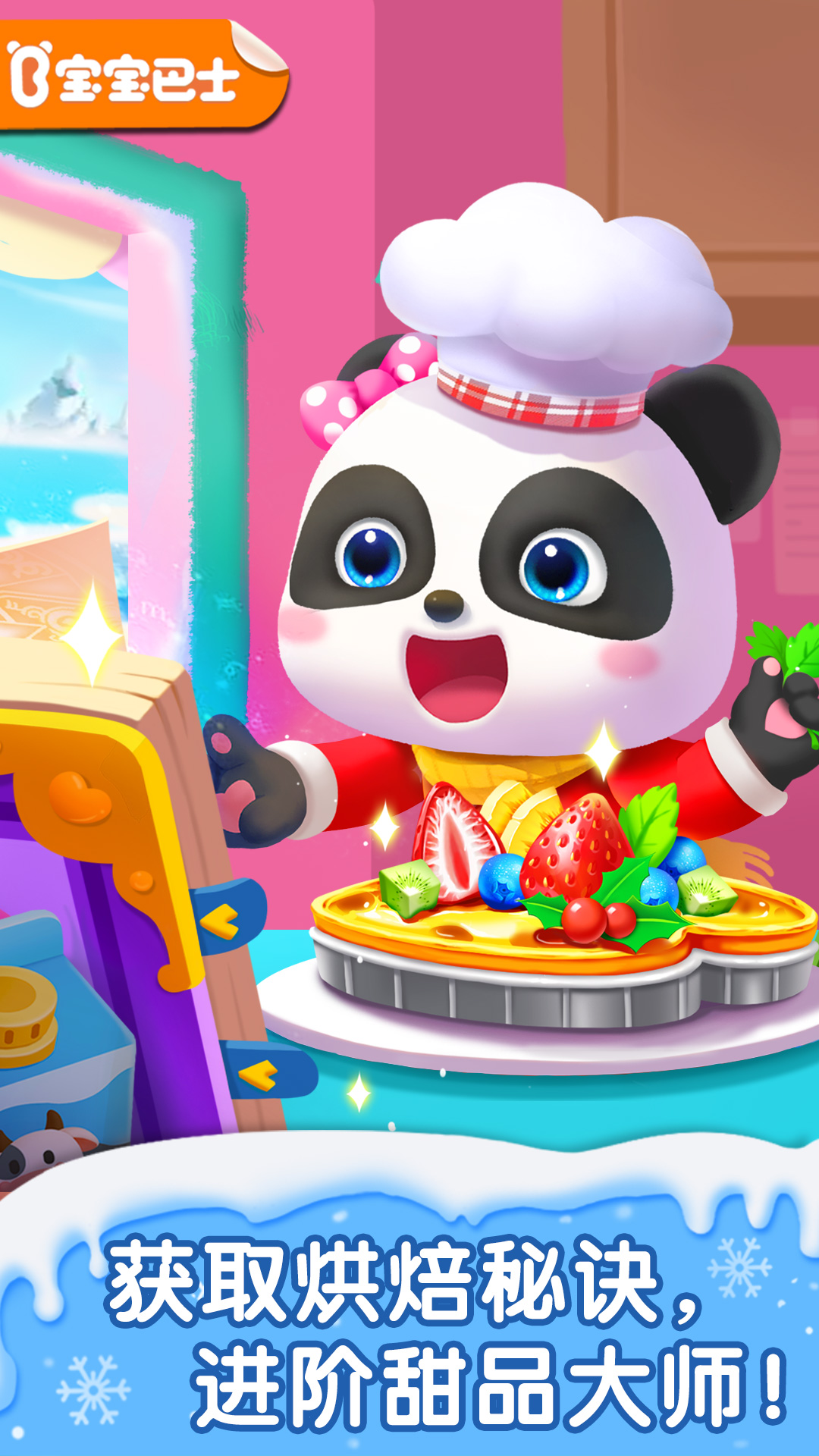 【宝宝甜品店】,专为宝宝设计的线上甜品烘焙店:宝宝在家就能变身“小小甜品师”,DIY各种热门甜品,还能参与甜品大师争霸赛,尽情享受制作美食的乐趣! 甜品种类繁多 甜品一应俱全:有宝宝喜欢的奶油蛋糕、圆筒;也有当下大受追捧的酸奶卷、水果捞;还有夏日少不了的彩虹冰棒、珍珠冰沙;更有给冬日带来暖意的水果蛋挞、姜饼屋……近二十种高人气甜品,宝宝随心选择,开始有趣的甜品DIY之旅。 食材、道具丰富 在制作中,宝宝将认知各类食材,比如制作彩虹冰棒,需要用到淡奶油、白糖和牛奶等。宝宝还能使用各种厨具,像制作珍珠冰沙,要先用冰格装好果汁,放入冰冻机速冻,再开启碎冰机,细细研磨;还得使用小奶锅熬制珍珠,让口感更丰富…… 制作过程详尽 烤制蛋糕胚、抹面裱花是烘焙奶油蛋糕的重要步骤;制作彩虹拉丝吐司,宝宝则需要将芝士削成芝士碎,放入小碗中,滴加不同色素后搅拌,让芝士充分“染色”……一系列甜品制作流程,全面锻炼宝宝的动手能力。 更有甜品大师争霸赛,宝宝将随机匹配对手,开启挑战!宝宝还能通过努力,不断升级专属甜品店。宝宝想将甜品店打造成什么主题?快打开【宝宝甜品店】试试吧!