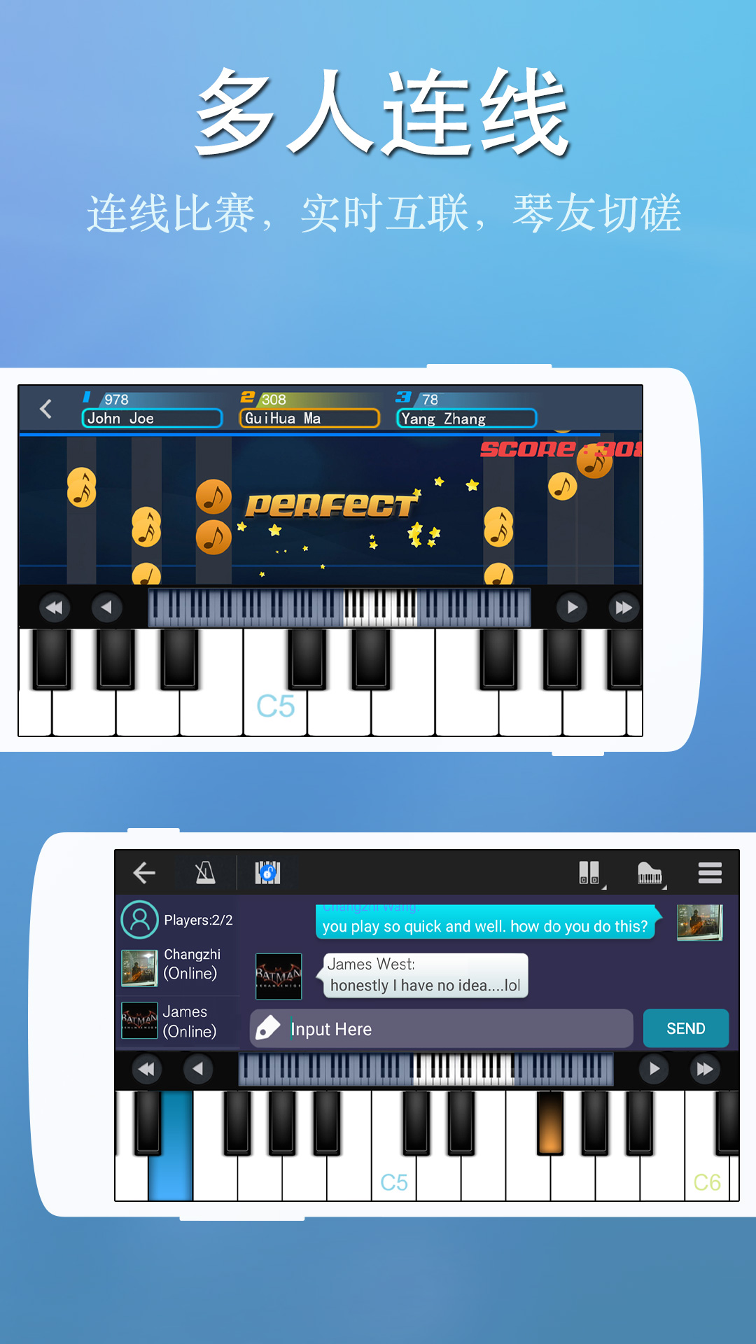 完美钢琴是为您的安卓设备设计的智能钢琴模拟器. 内置真实的钢琴音色, 您可以通过这个应用程序, 准确地学习钢琴, 寓教于乐! [ 智能键盘 ] • 88键全钢琴键盘 • 单排模式;双排模式;双人对弹模式 • 多点触控 • 屏幕力度侦测 • 键盘宽度调节 • 内置10种键盘音效: 钢琴, 八音盒, 管风琴, 钢丝弦吉他, 贝斯合成器,萨克斯,弦乐合奏,罗兹电钢琴,电子琴等 • MIDI和AAC声音录音 • 节拍器 • 录音文件直接分享或者设为手机铃声 [ 学习模式 ] • 学习上千首热门曲谱 • 三种引导模式:落球, 瀑布流, 五线谱 • 三种演奏模式:自动演奏, 半自动演奏, 音符暂停 • 左右手设置 • A-B循环 • 歌曲速度调节 • 歌曲难度调节 [ 多人连线与比赛 ] • 与来自世界任何地方的玩家一起连线弹钢琴 • 结交好友 • 实时在线聊天 • 每周新歌挑战排行 • 组建公会 [ 支持外接USB MIDI键盘 ] • 支持标准MIDI协议, 通过设备USB口外接MIDI键盘(比如雅马哈P105, Roland F-120, Xkey等) • 通过外接MIDI键盘来控制完美钢琴, 演奏, 录音和比赛. 您在使用中有任何问题请与我们联系. • 邮箱: revontuletstudio@gmail.com • 欢迎到百度完美钢琴贴吧吐槽. 让音乐从你的指尖发出!