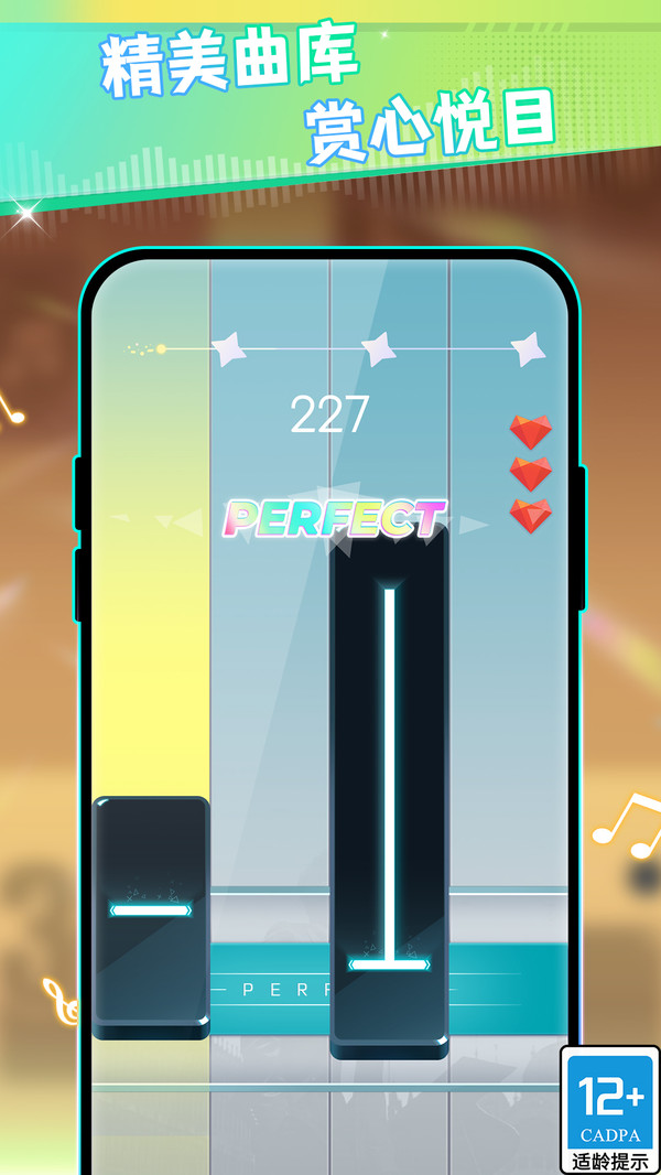 《星耀钢琴家》是一款独具特色的音乐节奏类游戏,它将钢琴演奏与现代流行音乐元素完美融合,为玩家带来前所未有的视听盛宴。 在游戏中,玩家需要根据音乐的节奏点击黑块,这些黑块会随着音乐的节奏上下移动。玩家需要在合适的时机点击黑块,以获得高分并成功完成一整首曲目。游戏的目标是在规定时间内完成尽可能多的曲目,以获得更高的奖励并解锁更多的曲目。 《星耀钢琴家》具有丰富的音乐库,涵盖了各种风格和类型的音乐,包括流行、摇滚、电子、古典等。玩家可以在游戏中欣赏到不同风格的音乐,感受音乐的魅力,并挑战自己的钢琴演奏技巧。 总的来说,《星耀钢琴家》是一款充满乐趣和挑战的音乐节奏类游戏,它将钢琴演奏与现代流行音乐元素完美融合,为玩家带来前所未有的视听盛宴。无论你是音乐爱好者还是喜欢挑战高难度游戏的玩家,都不妨试试这款游戏。