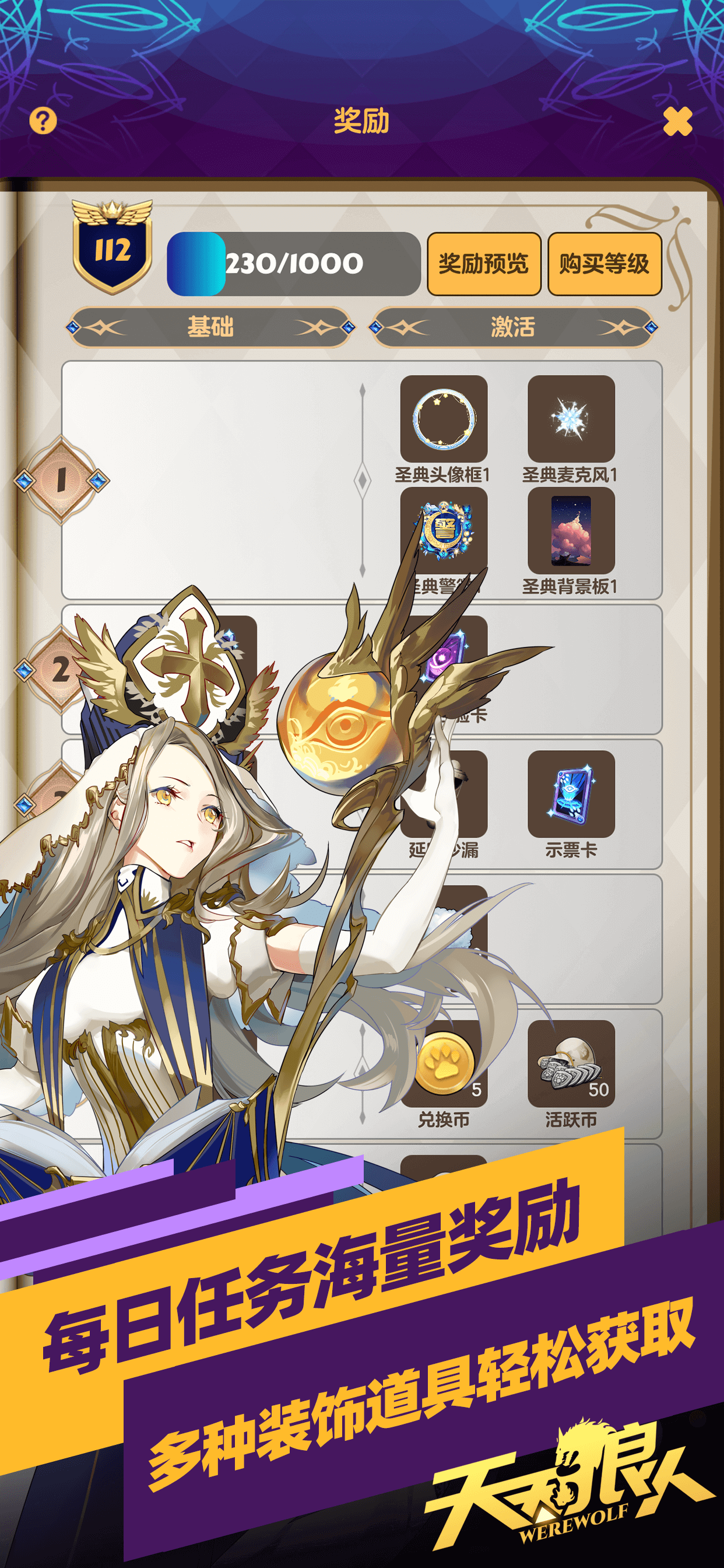 在天天狼人,结识可爱的你们!体验不同于太空狼人杀和太空杀的快感! 在这里你的逻辑就是真理,你的表演无懈可击。 JY、二龙、法拉利、神秘狗等大神主播等你较量。 真实的在线交友 真人视频,CP交友,狂飙演技不尬聊。 加入公会,寻找组织,开黑组团,公会对战一较高下。 快速匹配,组队开黑,随时随地开局,展示自我。 缜密的逻辑推理, 分区匹配,多种版型,不论萌新还是狼王,都有你的舞台, 更有全新版型血染钟楼,结合狼人杀和剧本杀,给你特别体验。 娱乐模式,有强大的娱乐功能,给你多重娱乐感受。 幸运宝箱,天狼圣典,海量道具等你来拿。 不间断限时活动,每天都有新鲜彩蛋等你探索! 还等什么,快来开一局吧! 官方新浪微博:天天狼人app