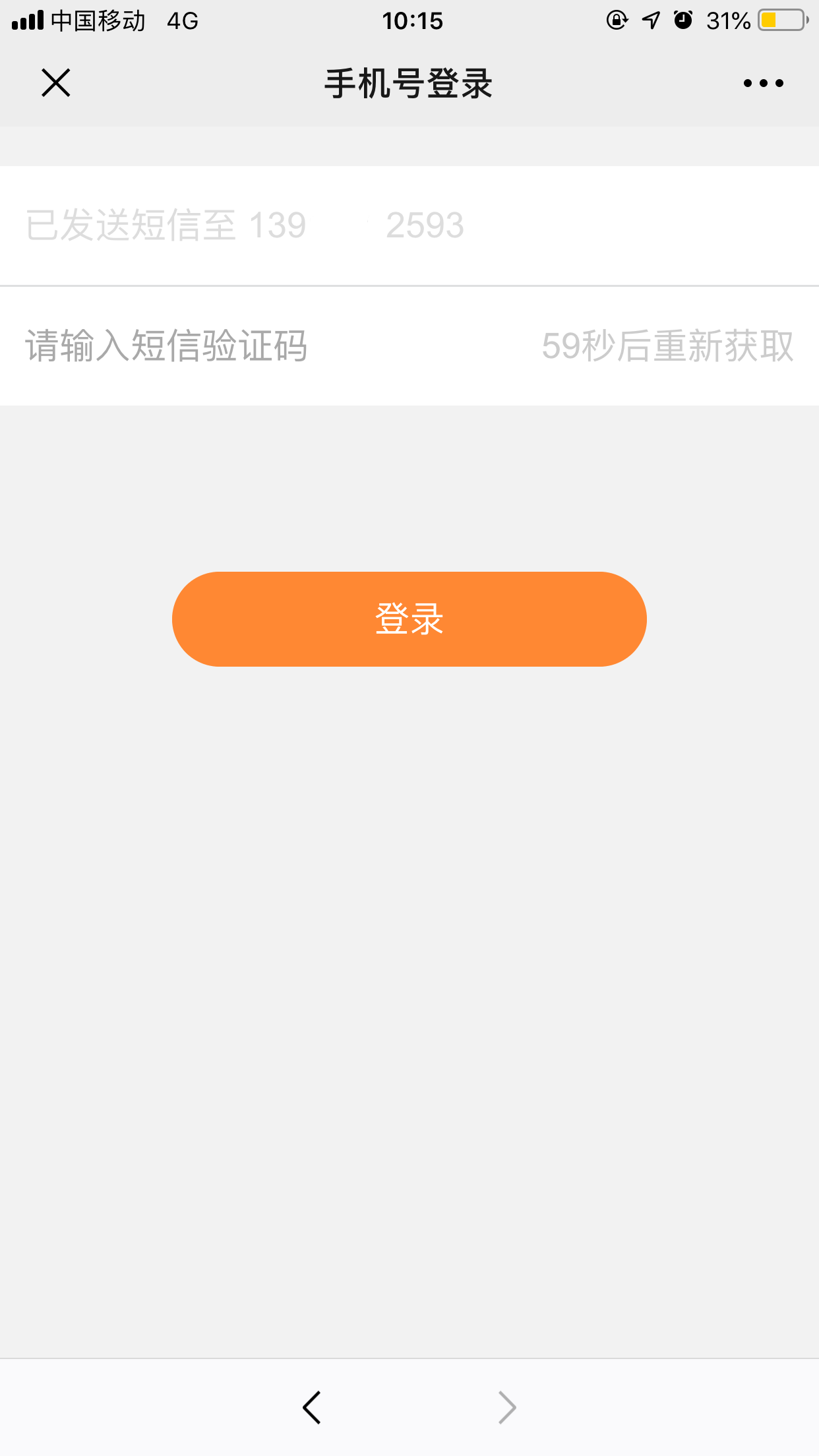 4.输入您的手机号,点击获取验证码,将短信验证码输入后点击登录;