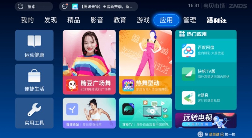 精品推荐:当贝市场收录了近千款应用和游戏,全部都是电视专属版应用。应用不在多而在精,每一款应用都是为您精心推荐。