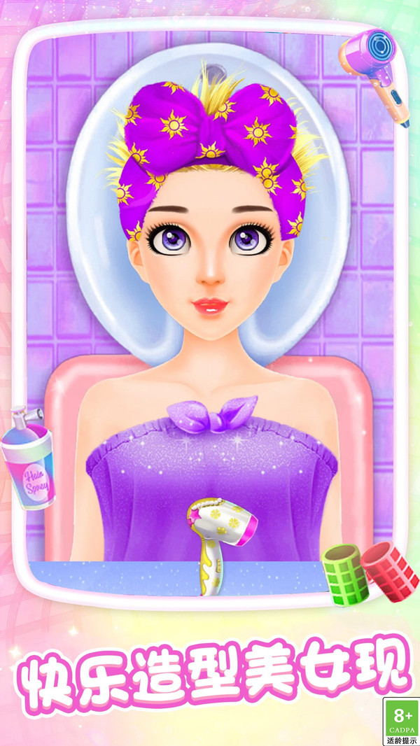 在这款梦幻唯美的公主主题休闲游戏中,你将化身时尚设计师,为公主打造令人惊叹的炫彩美发造型!从柔顺长发到俏皮卷发,搭配梦幻渐变色、闪亮发饰和魔法特效,自由发挥创意。通过简单有趣的操作,完成关卡挑战,解锁稀有发型与装饰,还能参与潮流发型大赛,赢得公主们的赞叹!轻松愉快的玩法,搭配治愈系画风,带你进入童话般的发型沙龙世界。