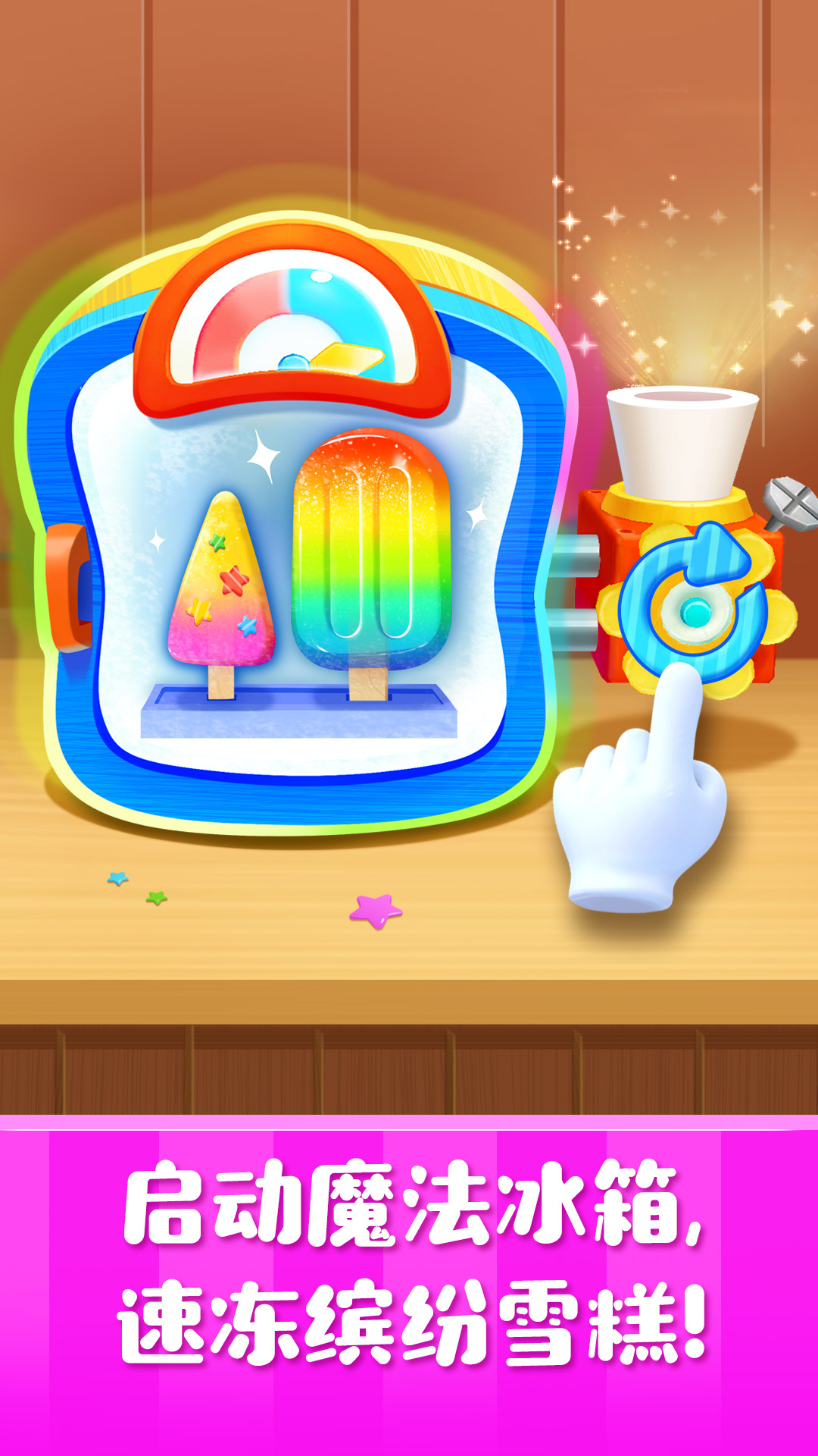 【雪糕工厂】重磅升级,淇淋乐园盛大开启! 在这里,宝宝将变身“雪糕大师”,DIY各式各样的冰淇淋,制作种类丰富的中西式美食。还可以展示更多创意,创建专属角色形象;还有旋转木马、音乐舞台等众多活动,充满惊喜。 即刻打开【雪糕工厂】,开始“甜蜜之旅”! -探寻彩虹冰淇淋的美味配方 多样的口味是彩虹冰淇淋受欢迎的原因之一!巧克力的浓郁、坚果的香脆……每一种口味都赋予彩虹冰淇淋令人惊喜的口感,宝宝偏爱哪种?依据喜好,准备心仪的冰淇淋口味原料吧! 先试试巧克力口味。使用滚轮工具,帮巧克力“按摩”一番;再混合融化后的巧克力酱,打造巧克力味冰淇淋。如何变成彩虹色?启动冰淇淋机,混搭不同颜色的冰淇淋就完工啦。 -打造各种冰品的创意造型 怎样让冰淇淋拥有高颜值?宝宝可以自由发挥创意,挑选小黄鸭外观的冰淇淋碗,撒上七彩糖粒、挤上甜甜的果酱,再点缀小太阳伞……创造“百变”冰淇淋! 还想为雪糕“加分”?那就挑选亮眼包装:西瓜雪糕+亮红包装袋,看上来更加“秀色可餐”。芒果雪糕适合什么样的包装袋?宝宝快来搭配一番。 【雪糕工厂】里,还有汉堡、薯条,等宝宝们来制作。快继续施展创意,打造美味!